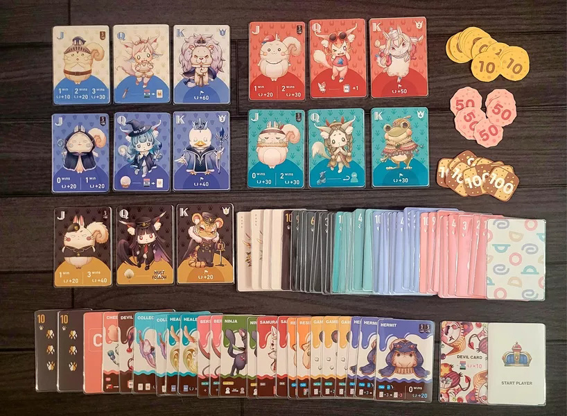 KINGs: TRICKTAKERs подойдёт для компании из 2-5 человек, но самые яркие партии (по опыту настольщиков) у вас состоятся при трёх-четырёх игроках за столом. На одну партию потребуется 30-40 минут времени.